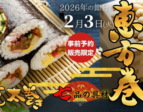 毎年ご好評をいただいているすし処漁美(いさりび)の《開運太巻き恵方巻》を、2026年の節分も事前予約...